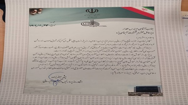 بدین وسیله از تلاش و زحمات صادقانه جنابعالی و همکاران محترم به ویژه مدیر روابط عمومی و مجری طرح جهاد آبرسانی در آن شرکت که از ابتدای تیر امسال در زمینه اجرای برنامه های مستند و آگاهی بخشی جهاد آبرسانی وزارت نیرو از جمله؛ تولید محتوای فاخر از تلاش های مجموعه دست اندرکاران این طرح ملی و پوشش گسترده مناسب اخبار آن و نیز برپایی نمایشگاه جهاد آبرسانی اهتمام لازم داشته اید، تشکر و قدر دانی نموده، توفیق روزافزانتان را در استمرار امر خطیر جهاد تبیین آرزومندم.